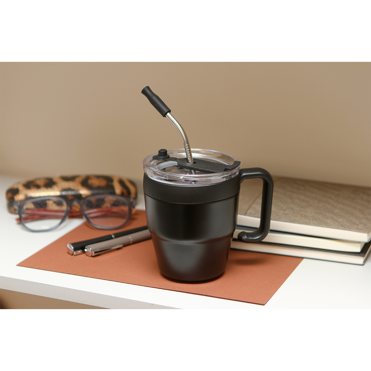 Termo Lofer. - Termo de doble pared fabricado en acero inoxidable 304 interior, 201 exterior, capacidad de 480 ml. Este termo es el indicado para mantener tus bebidas calientes o frías por más tiempo, su diseño práctico ayuda a un fácil agarre y transporte. Incluye un popote y tapa.