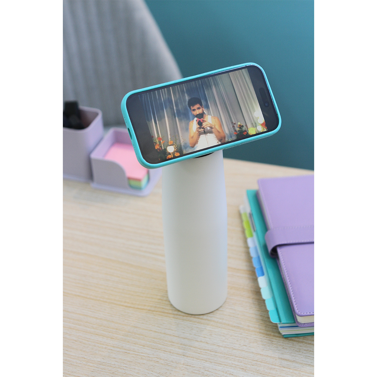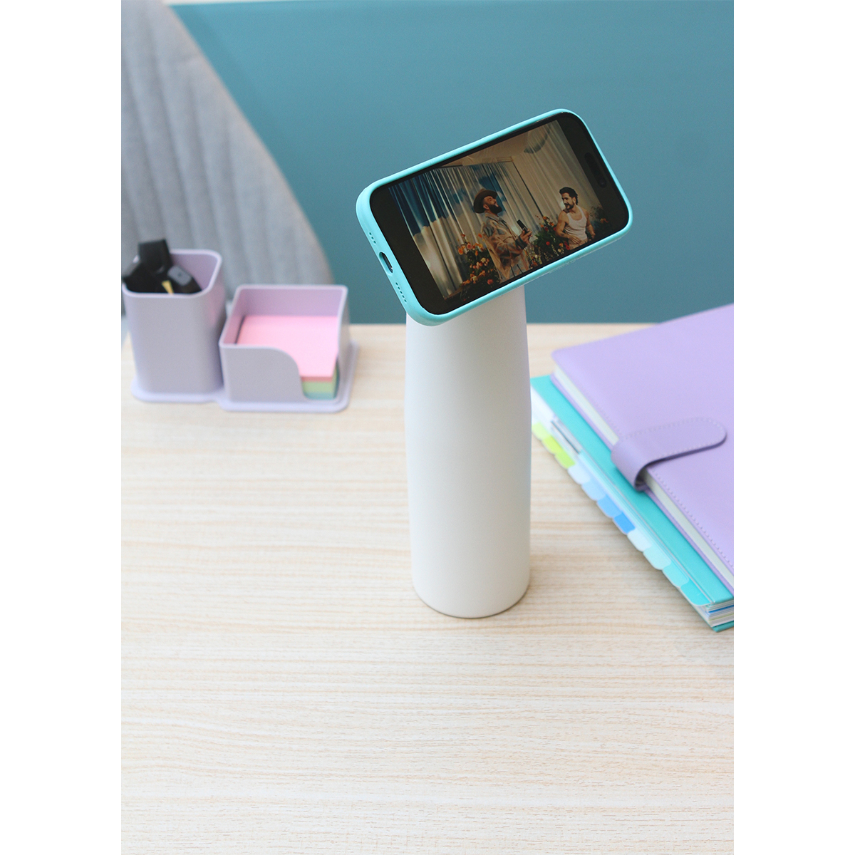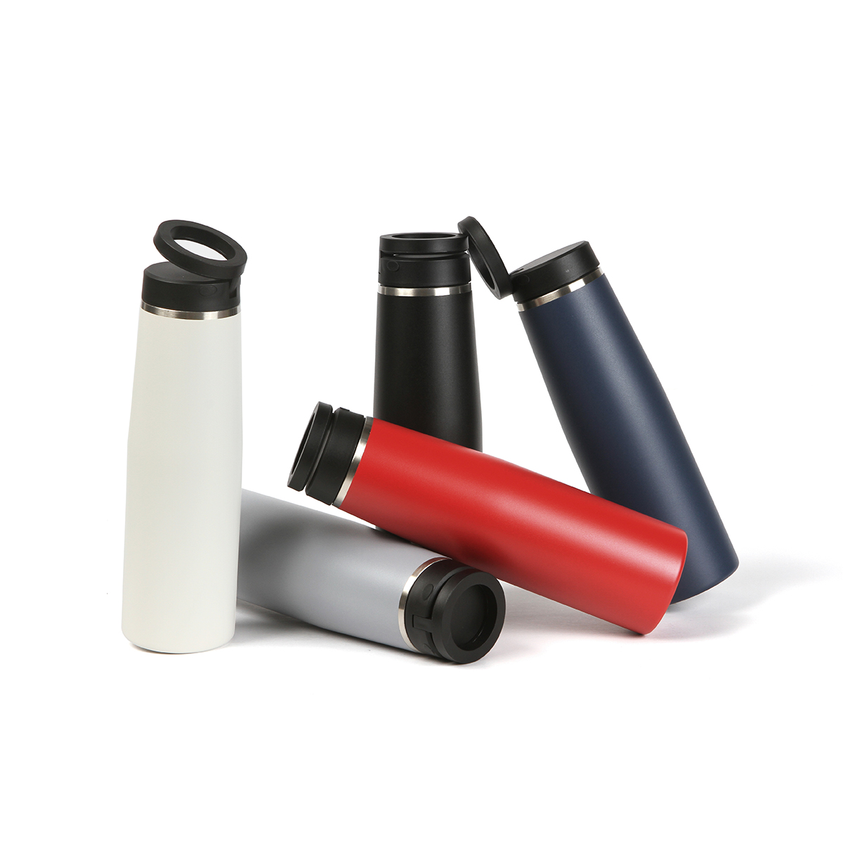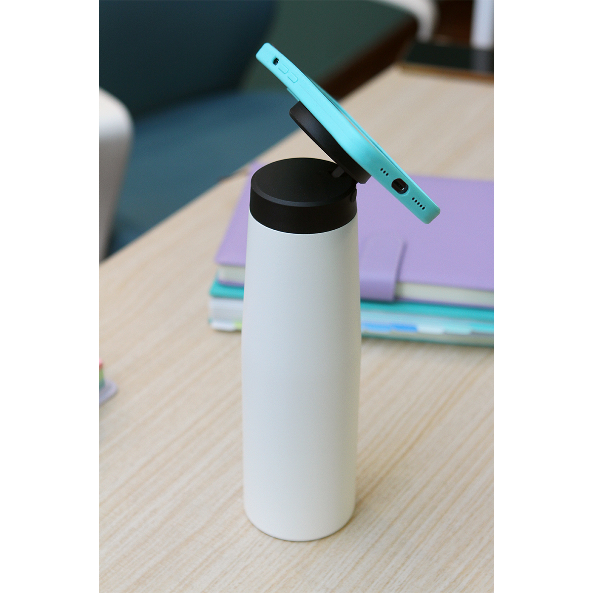 Termo Didcot. - Termo de doble pared fabricado en acero inoxidable con recubrimiento en polvo, con tapa de polipropileno con función de soporte magnético para el teléfono. Resistente y seguro, ideal para mantener la temperatura de tus bebidas mientras te acompaña en tu rutina diaria. Capacidad de 550 ml.