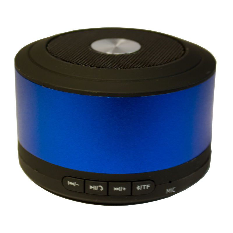 BOCINA BLUETOOTH Bocina Bluetooth Metálica con base antiderrapante. Función Manos Libres incluida, cable cargador USB y lector Micro SD. Duración aproximada de 5 horas. Alcance máximo de conexión 10 m.
