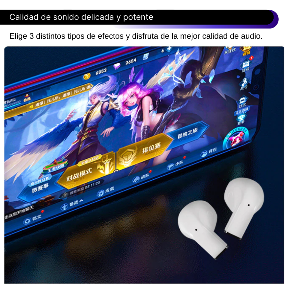 MINI AUDÍFONOS BLUETOOTH PRO 5S TWS Mini audífonos Bluetooth inalámbricos con base recargable. Control táctil para volumen, reproducción de música y función de llamada. Rango de conexión 10 metros. Incluye cable USB tipo C.