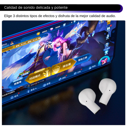 MINI AUDÍFONOS BLUETOOTH PRO 5S TWS Escuchar música al 100% de volumen durante 4 horas. La caja de carga puede cargar los auriculares por 5 veces Elige entre sus 3 efectos de sonido, que se pueden cambiar presionando a un costado de los audífonos. Caja de carga compacta, fácil de llevar y mantiene un rango de conexión de 10 metros Los auriculares son compactos y no tienen sensación Soporte para carga de auriculares, carga rápida, carga durante 5 minutos, escucha durante 2 horas.
