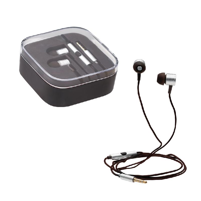 Audífonos en estuche y protección de goma. Medidas: 7 x 7 x 3 cm Material: Metal y plástico. Empaque: TBC