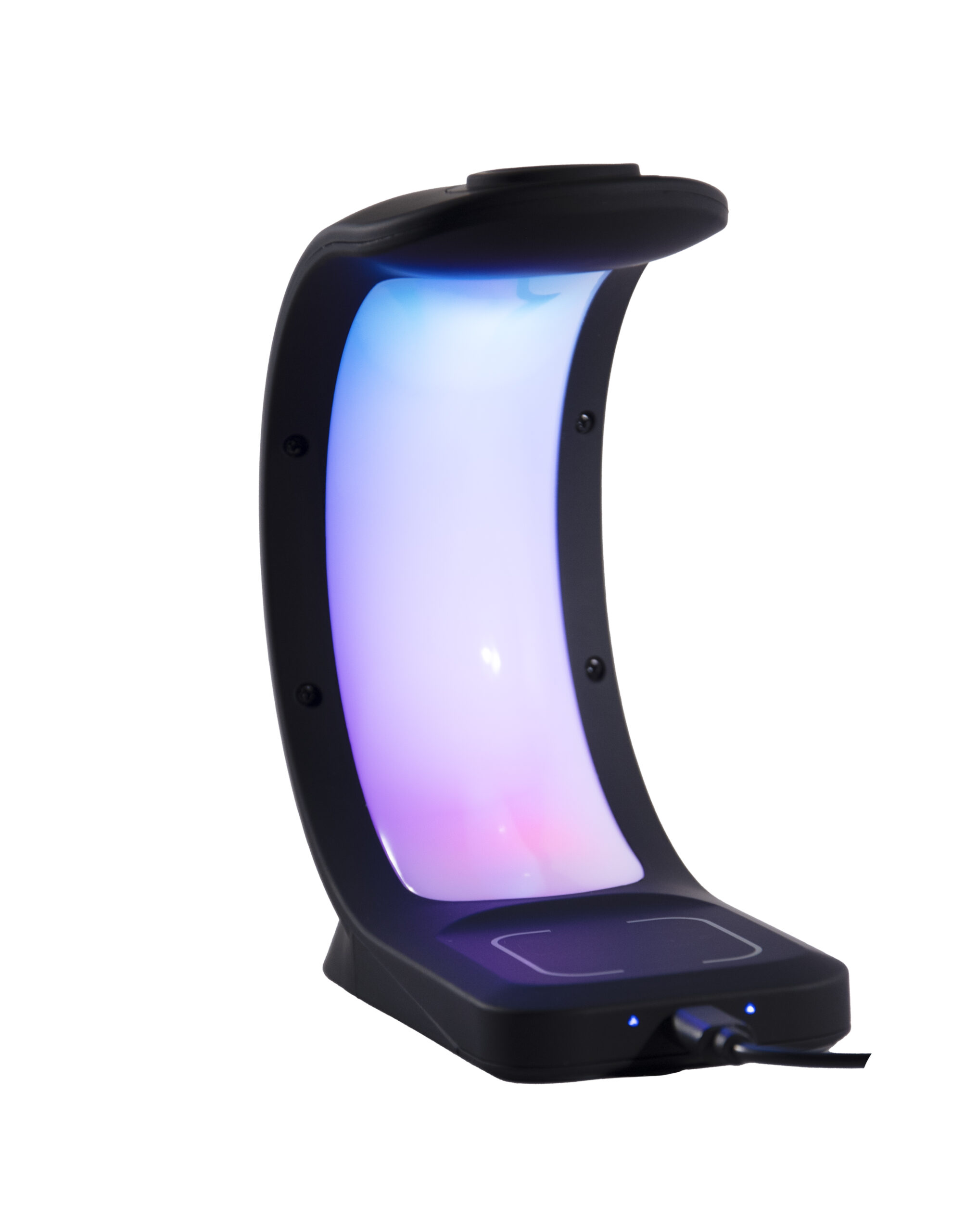 CARGADOR INALÁMBRICO MULTIFUNCIONAL 3 EN 1 Cargador con velocidad de carga de 15W, equipado con luces RGB en 4 tonalidades independientes. Dispone de un botón táctil para un fácil manejo. Ofrece áreas específicas para cargar smartphones, auriculares y smartwatch. Compatible con dispositivos Android e iOS. Incluye un cable tipo C.