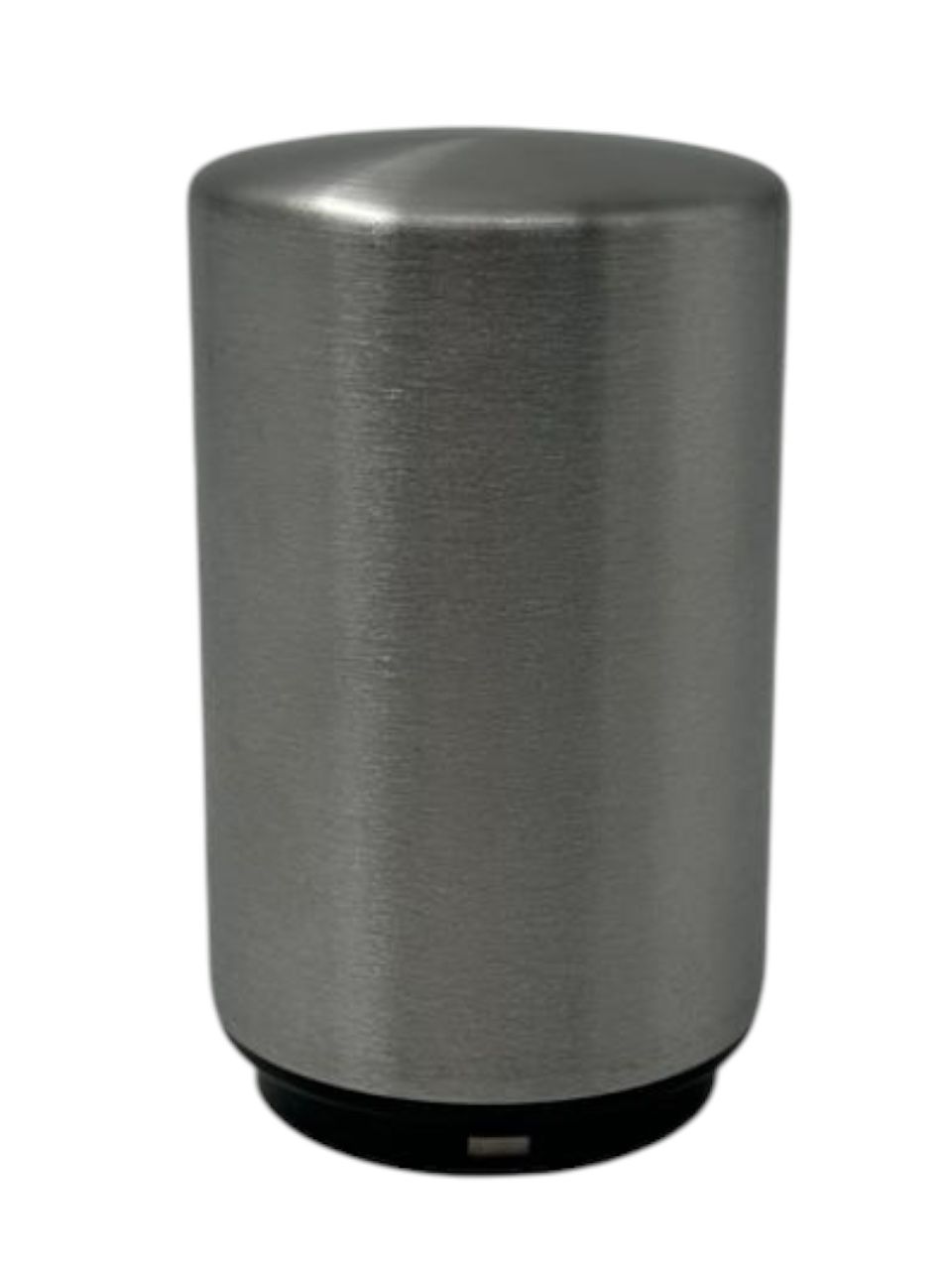 Destapador cilíndrico de metal con sistema push down y función magnética.