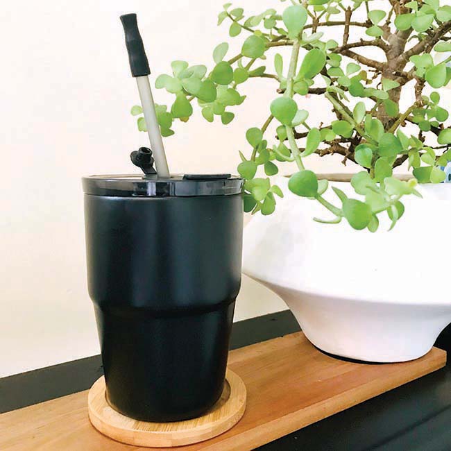 • Tapa a presión con popote y boquilla de silicón.