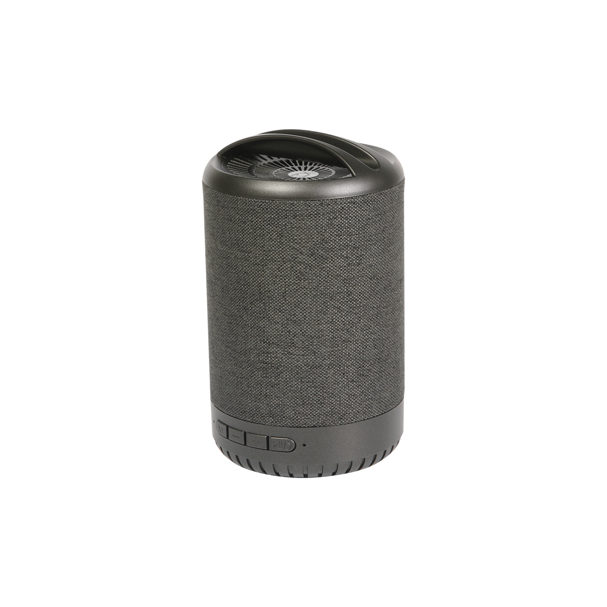 Bocina Baratti. - Bocina con conexión de sonido sin cables, radio FM, entrada para tarjeta TF y memoria USB, fabricada en plástico ABS con cubierta de tela y soporte para celular en la parte superior. En la parte inferior se encuentran 4 botones para manipular la musica, carga a través de cable USB (incluido). Incluye caja de cartón individual.