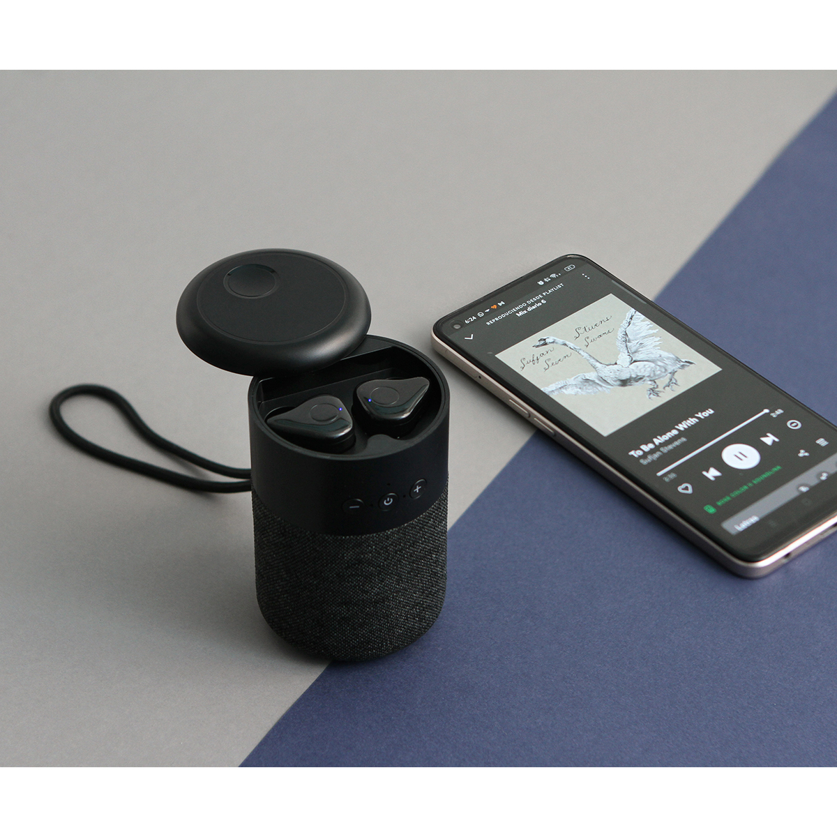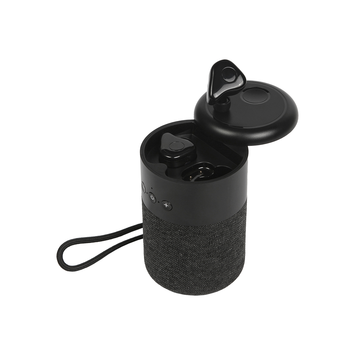 Bocina Marinetta. - Bocina con conexión de sonido sin cables, auriculares incluidos fabricada en plástico ABS, entrada de USB Typo-C, control de volumen, cuenta con función para cancelar el ruido, tiempo de carga de 40-50 minutos y de reproducción de 3.5-4.5 horas. Cuenta con un cordón que te permite llevarla a cualquier parte teniendo la posibilidad de usar las bocinas o los auriculares en cualquier momento. Incluye caja individual