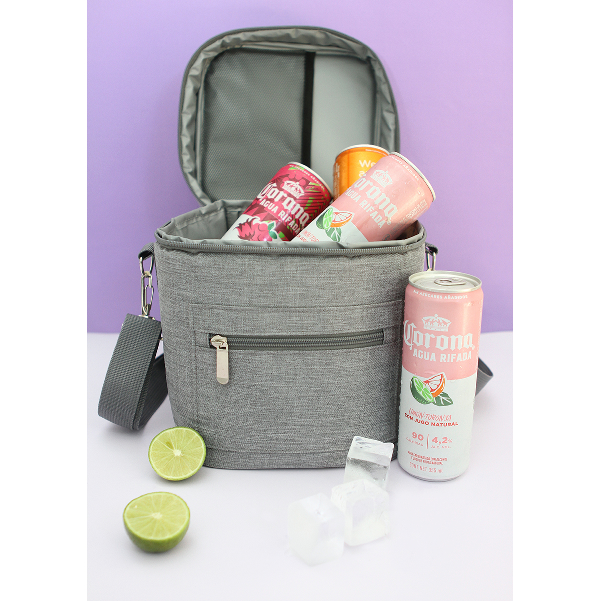 Hielera Ulivi. - Hielera térmica fabricada en poliéster con forro de aluminio, bolsillo frontal, bolsillo interno de malla en la parte superior de la tapa de la hielera, correa para hombro ajustable desmontable ajustables lo cual te brinda la posibilidad de adaptarla a tu comodidad y  asa superior.