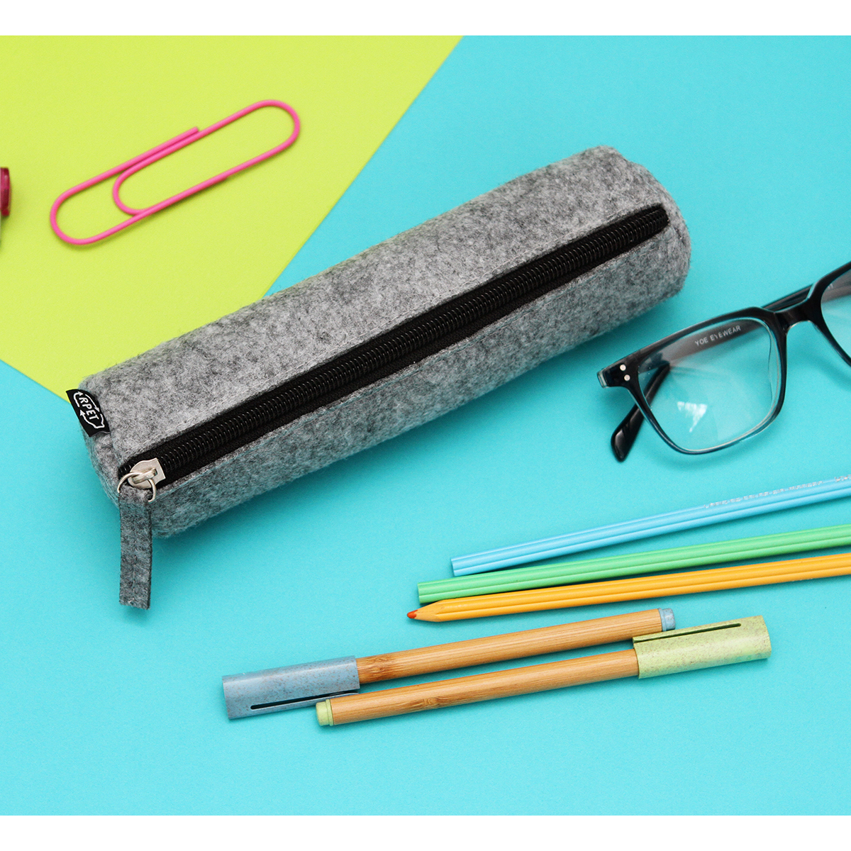 Lapicera de RPET Bizanet. - Lapicera fabricada en fieltro de poliéster reciclado (RPET), de tamaño compacto lo que la hace bastante útil y fácil de transportar, con cierre. Esta lapicera es una opción agradable para el medio ambiete.El RPET es un material resistente y duradero que puede soportar el uso diario y el desgaste, lo que lo hace ideal para productos textiles. Además es sostenible porque utilizan materiales reciclados en su fabricación, lo que reduce la cantidad de residuos y disminuye el impacto ambiental.