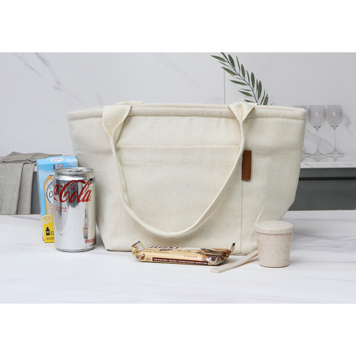 Lonchera Linz. - Lonchera fabricada en polialgodón con forro interior de papel aluminio laminado y espuma de poliuretano. Cuenta con dos asas y una pequeña bolsa en el frente.  Es ideal para mantener tus bebidas o alimentos frescos. Capacidad de 6.4 L.