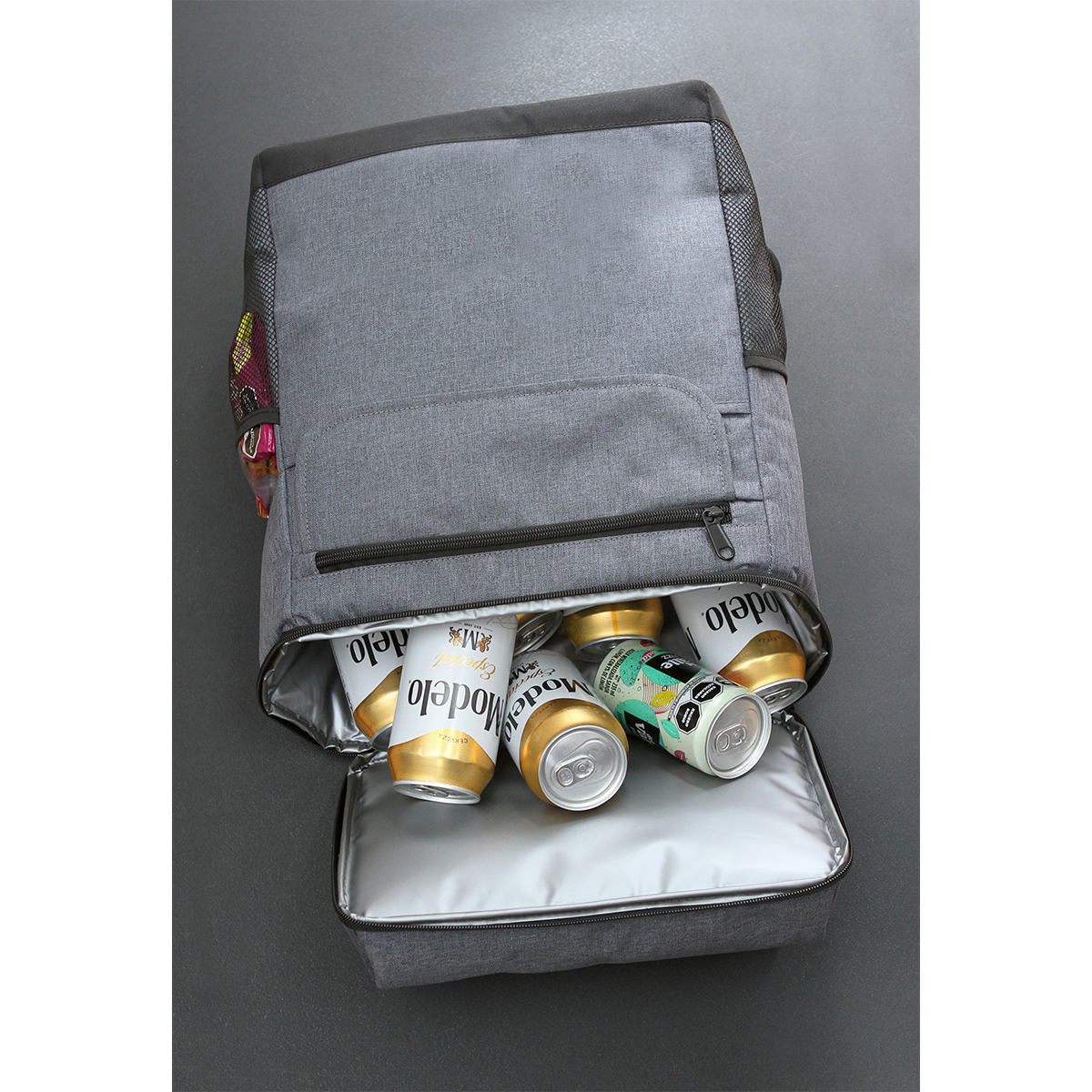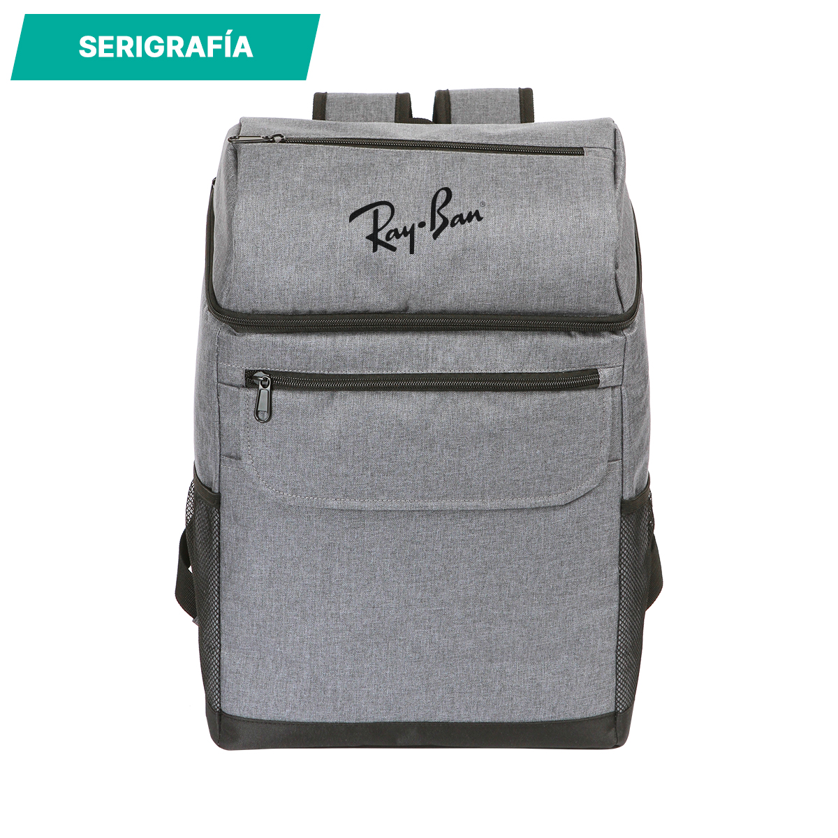 Hielera Morée. - Hielera tipo mochila fabricada en poliéster. Incluye un compartimento principal con cremallera, bolsillo frontal pequeño con cremallera, dos bolsillos laterales de tela tipo mesh, un bolsillo superior con cremallera y dos tiradores.