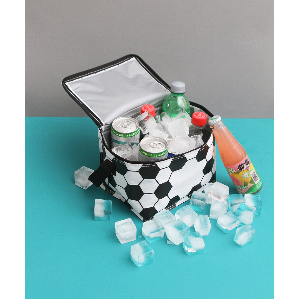 Hielera Noratus. - Mantén tus bebidas frías y tu estilo en alto con esta hielera pequeña de 3.5 litros, diseñada con un divertido diseño de balón de fútbol. Fabricada en poliéster resistente con forro interno de PEVA, ayuda a conservar la temperatura de tus alimentos o bebidas por más tiempo, ideal para llevar a partidos, picnics, escuela o salidas rápidas. Su tamaño compacto es perfecto para transportar fácilmente, mientras que su interior es fácil de limpiar. Una hielera práctica y con estilo futbolero que te acompaña a donde vayas. ¡Perfecta para fanáticos del fútbol de todas las edades!