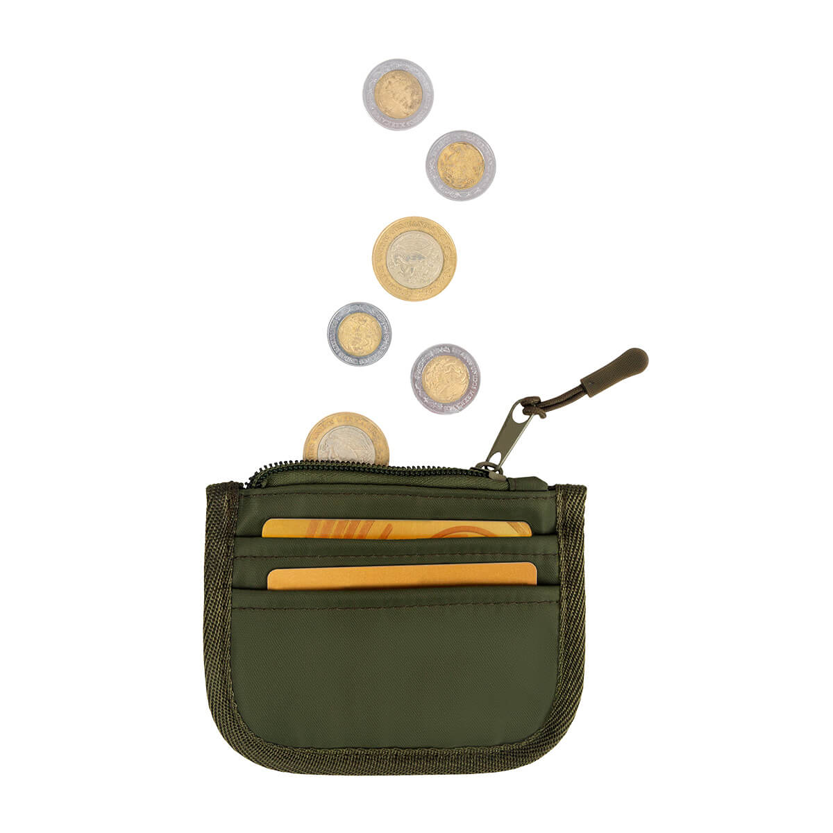 MONEDERO DÍRHAM - Monedero compacto con diseño funcional. Incluye tres compartimentos para tarjetas, dos al frente y uno posterior. Compartimento principal con cierre de fácil agarre. Ideal para llevar tus tarjetas, monedas y billetes bien organizados.