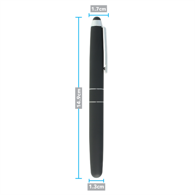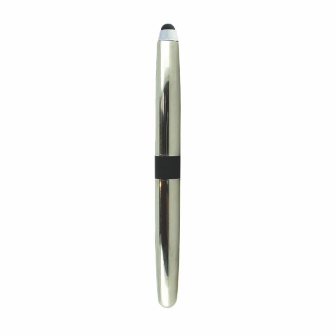 Dakar Touch Bolígrafo metálico con tapón que cierra a presión. Detalles color cromo. Mismo diseño que el bolígrafo Dakar, pero con touch en la punta del tapón. Escritura de alto desempeño debido a su repuesto japonés tipo roller (a elegir entre tinta negra o azul). Incluye estuche individua