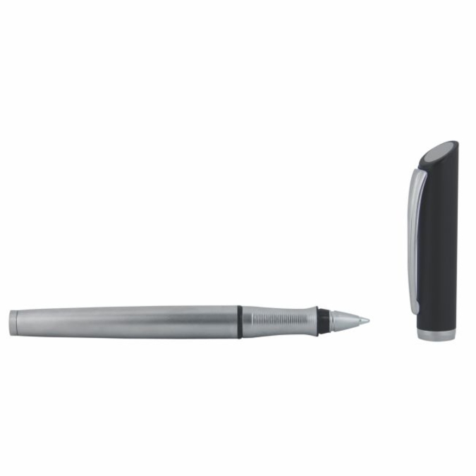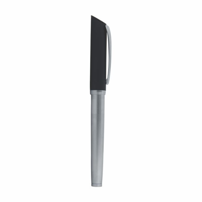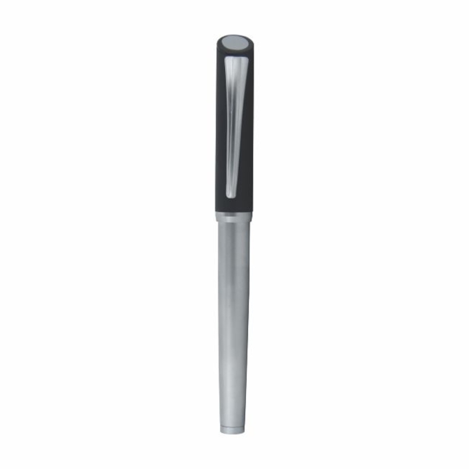Luxor Bolígrafo metálico con tapón que cierra a presión. Cuerpo plata y tapón de color mate. Escritura de alto desempeño debido a su repuesto japonés tipo roller (a elegir entre tinta negra o azul). Incluye estuche individual.