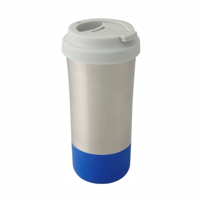 Vaso Funky Vaso térmico de acero inoxidable e interior plástico de 500 ml. Base de silicón hipoalergénico (colores varios). Tapa con cierre de Rosca y boquilla de seguridad. Se entrega en caja de cartón individual. Lavar antes de usar.